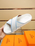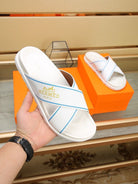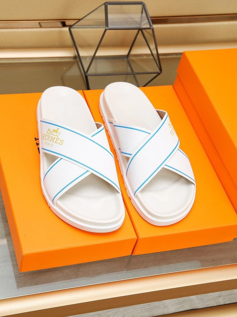 HM Men's Cross Strap Slide White Cowhide 544099