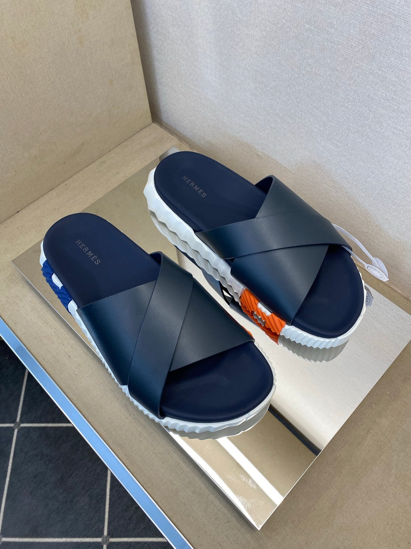 HM Men's Infra Slide Navy Blue Calfskin 602611