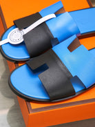 HM Men's Izmir Slide Black Blue Cowhide 685819