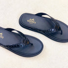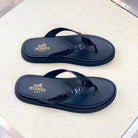 HM Men's Thong Sandals Black Rubber Sheepskin 561664