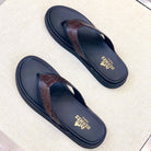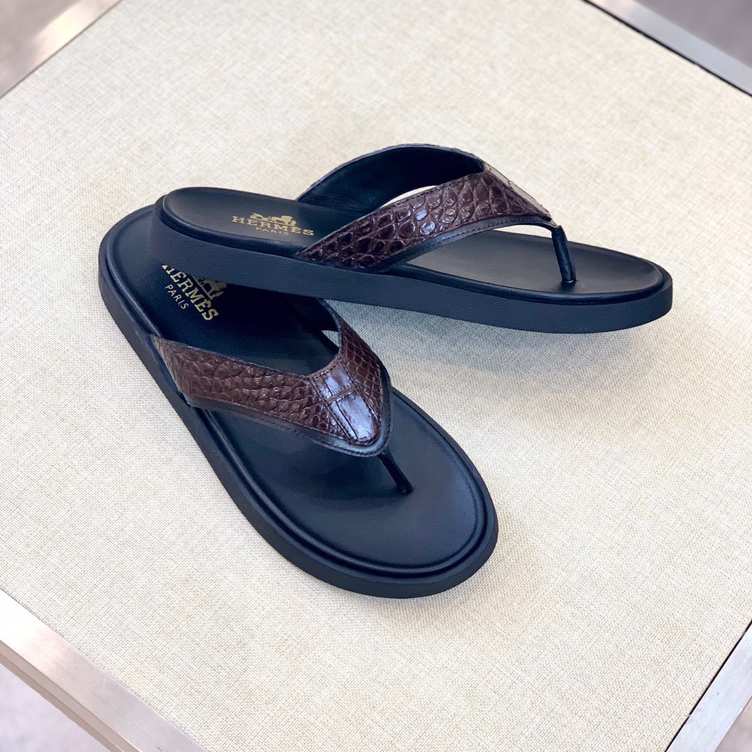 HM Men's Thong Sandals Brown Rubber Sheepskin 561669