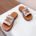 LEA TRIOMPHE PLATFORM SLIDES WOMEN VEGETABLE TANNED CALFSKIN BROWN/WHITE