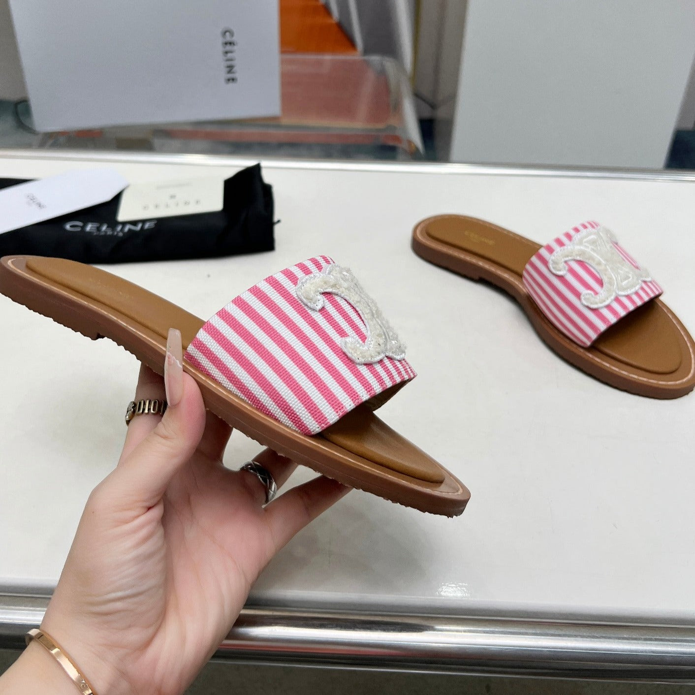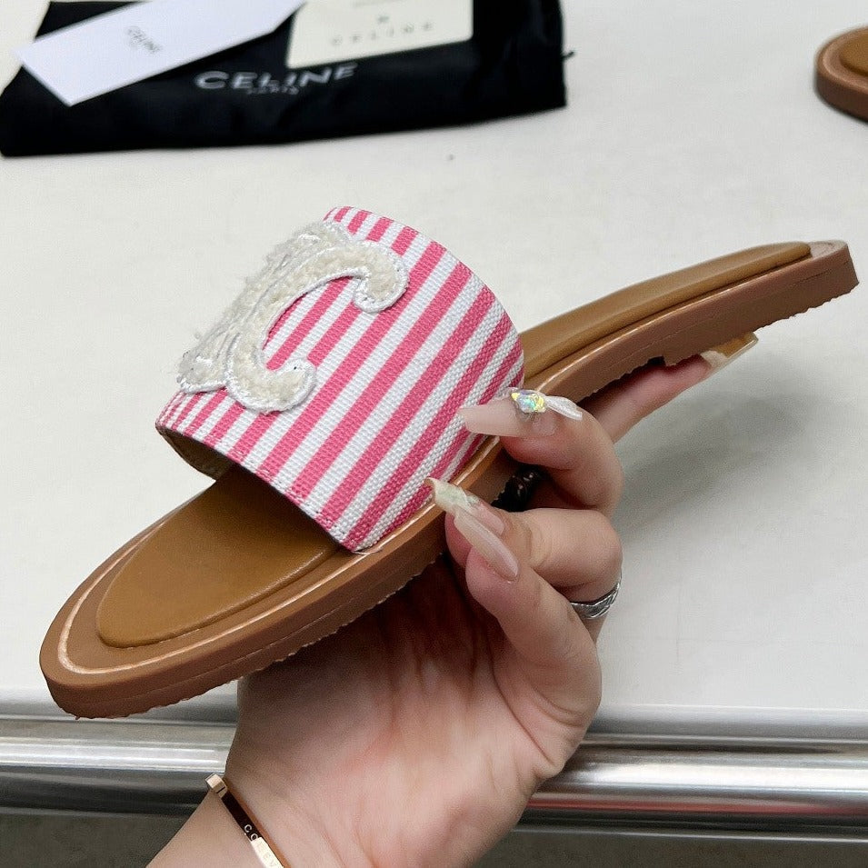 LYMPIA MULE IN TRIOMPHE JACQUARD WOOLLEN FABRIC WHITE PINK CARO