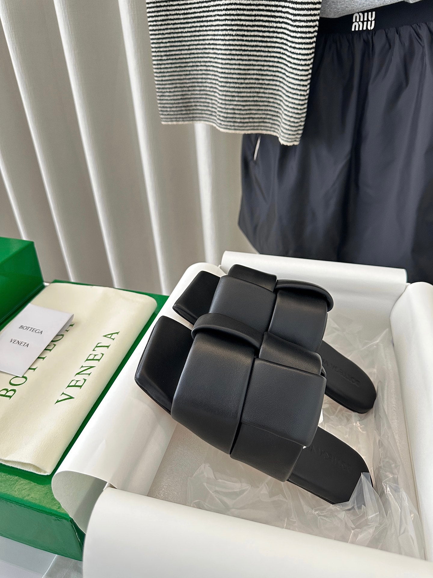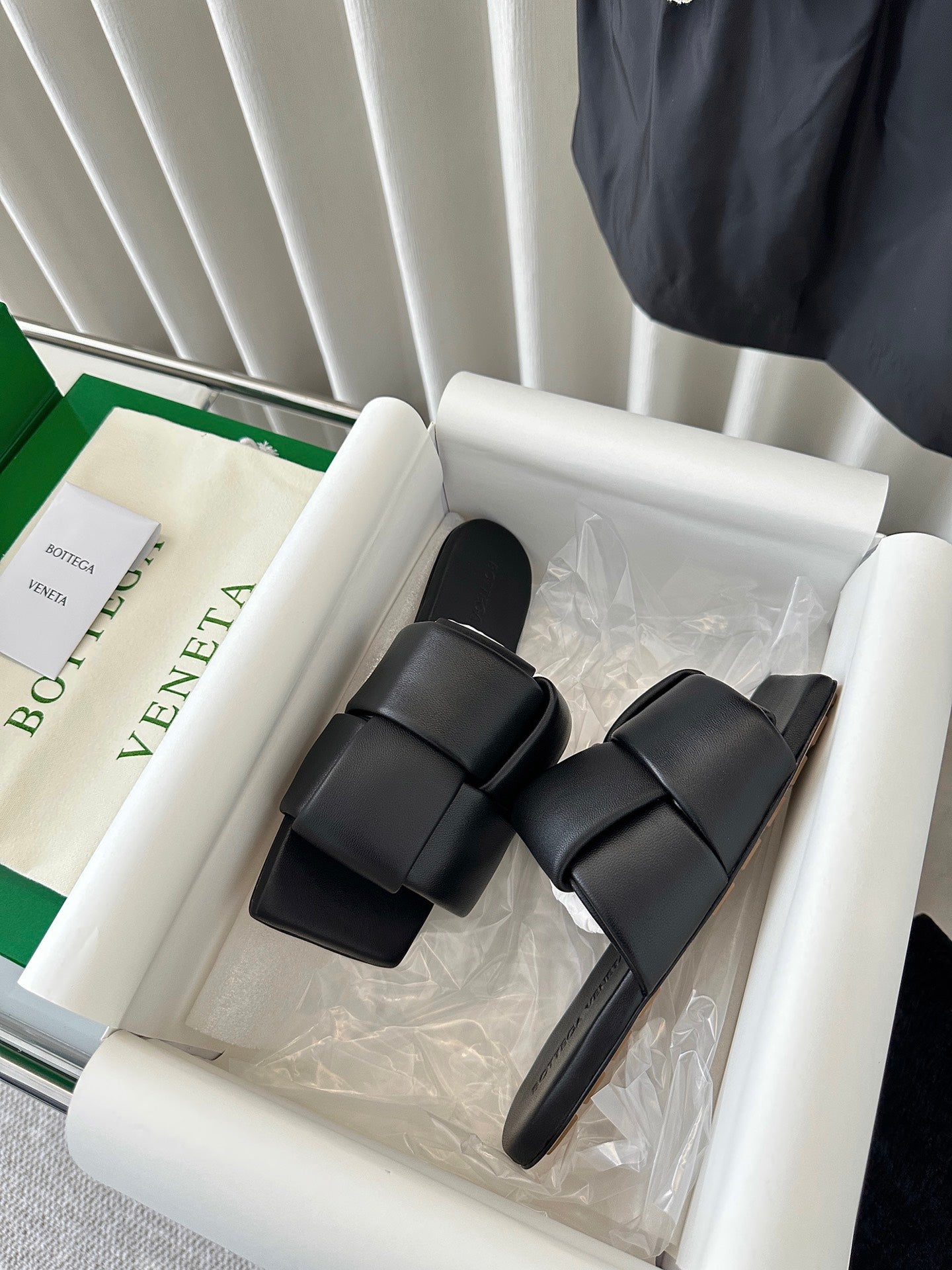 patch mule flat black lambskin