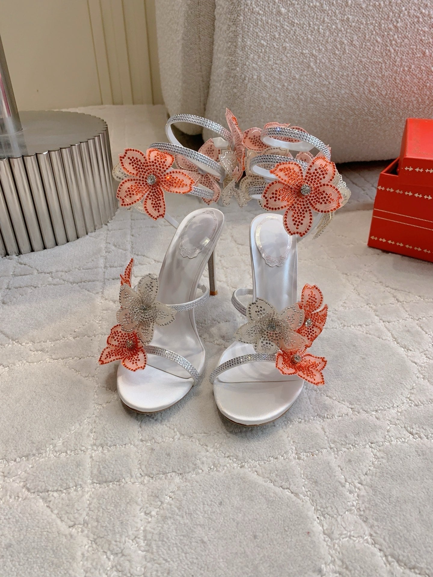 RC Flower Sandals Silver Sheepskin Rhinestones 328464