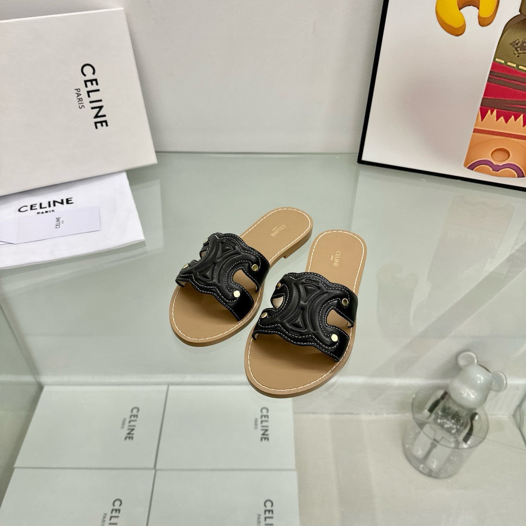 TRIOMPHE MULE IN CALFSKIN BLACK