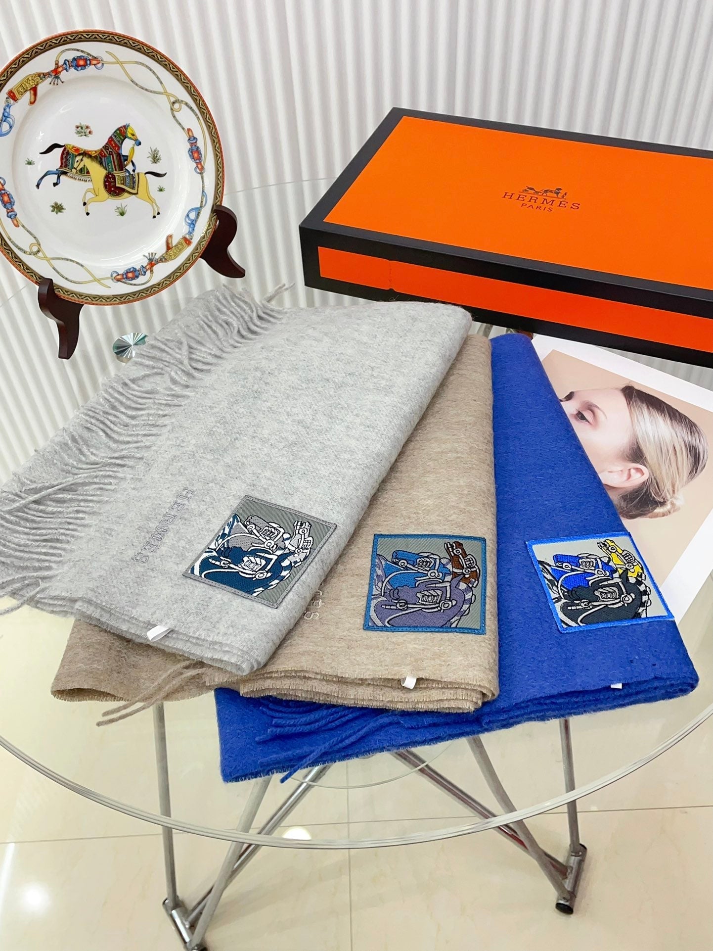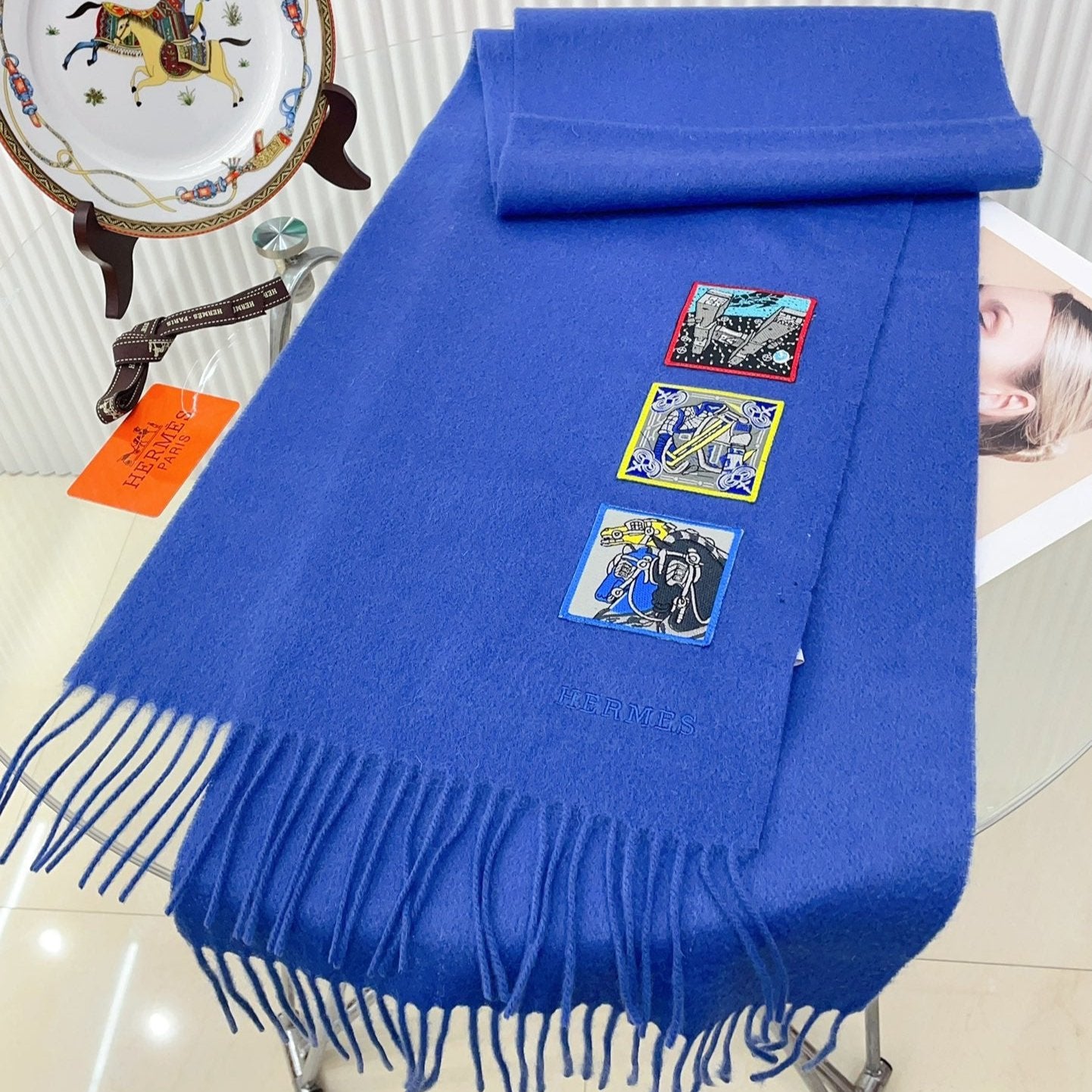 BADGES SOIE MUFFLER 180 CM SCRAF IN COBALT BLUE CASHMERE