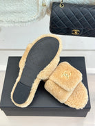 Chanel 25 Buckle Flip-up Thick-soled Slippers Beige Wool 465382