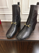 Gucci Horsebit Chunky Heel Ankle Boots Black Cowhide 490560