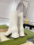 Gucci Horsebit Square Toe Mid-heeled Ankle Boots White Cowhide 490536