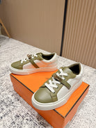 HM Casual Sneakers Sliver Buckle Olive With White Leather