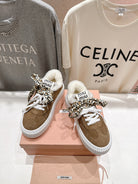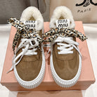 MiuMiu 25 Sneaker Brown White Leopard Suede Wool 535581