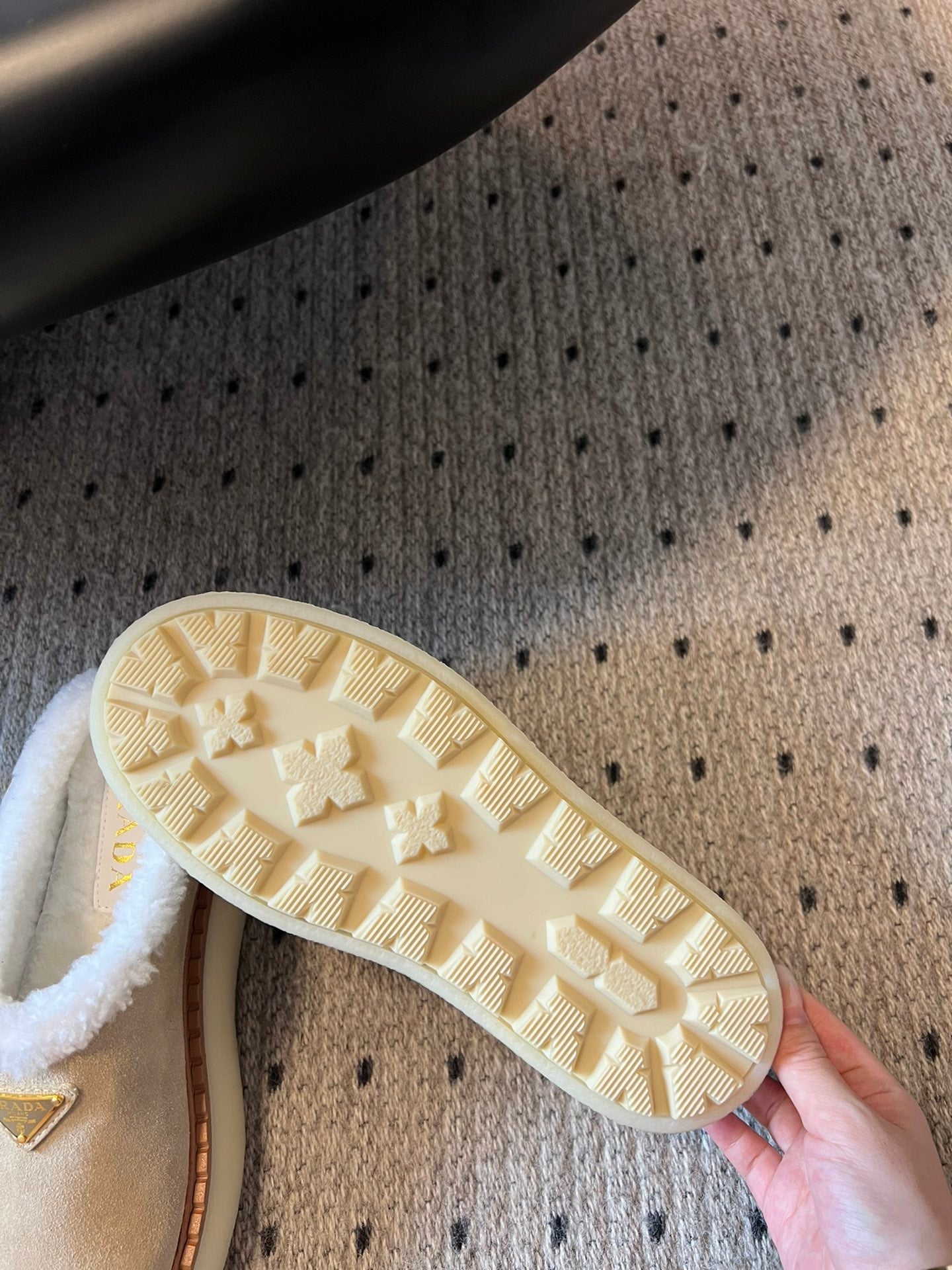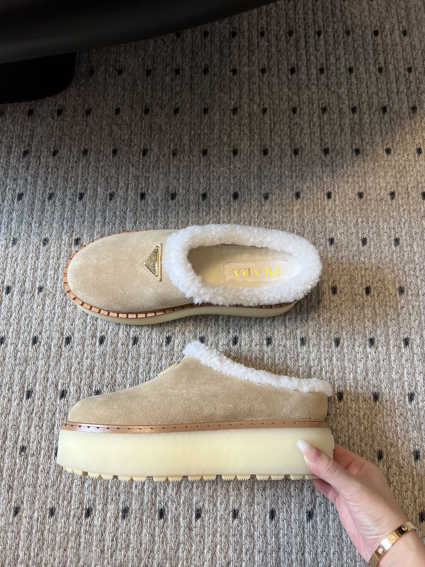 Prada 25s Furry Half-Cover Slippers Beige Suede And Wool 538429