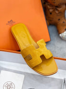 - Material: Sandal in suede goatskin with iconic "H" cut-out.