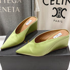 Alaia 25 Cube Wedge Mules Avocado Green Silk Sheepskin 300085