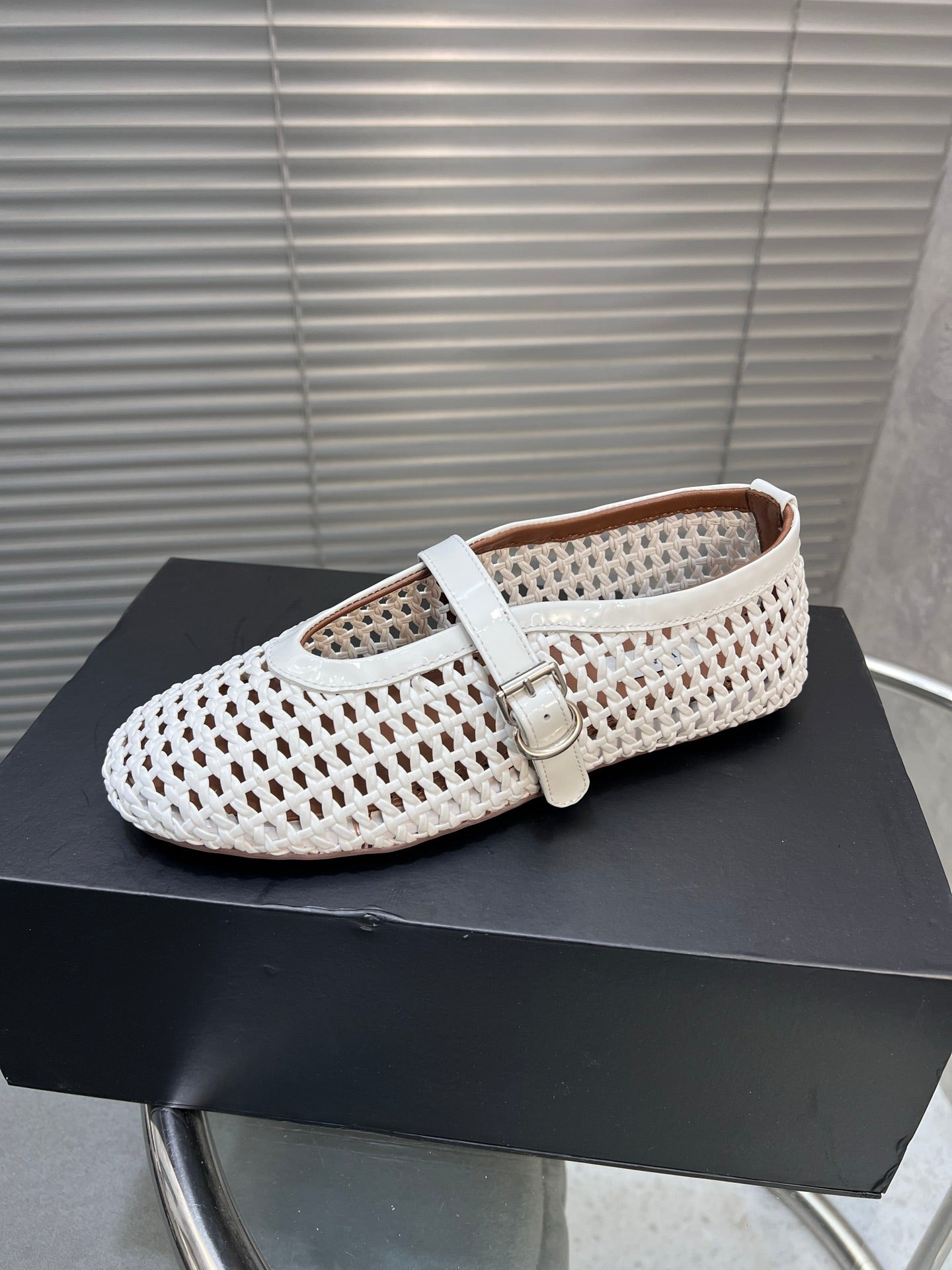 Alaia Braided Hollow Ballet Flats White Cowhide 300044