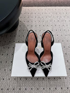 Amina & Muaddi 25 Slingback Black Silk Sheepskin