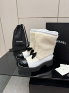 CC platform snow boots white black sheepskin and wool 532187