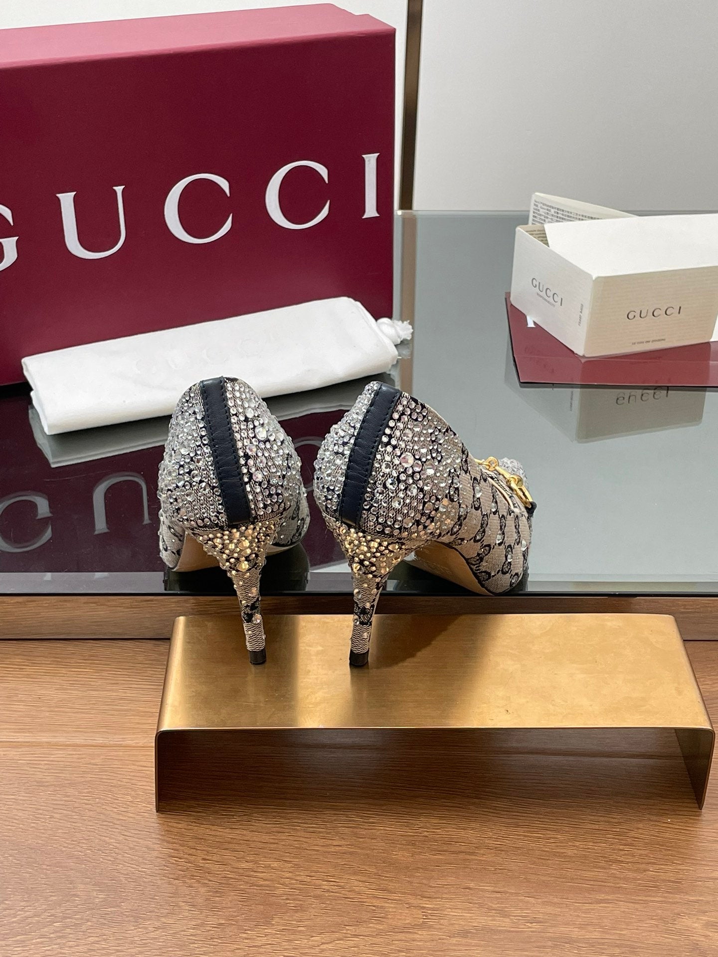 GG Horsebit Pump 85 Beige Black Monogram Canvas Crystal-Embellished