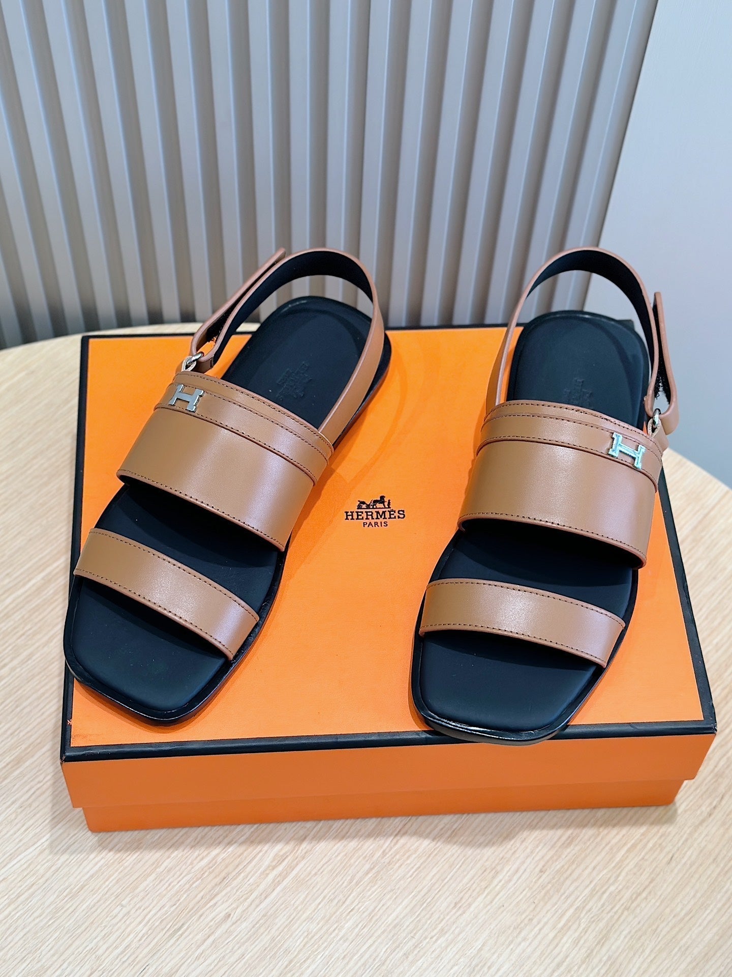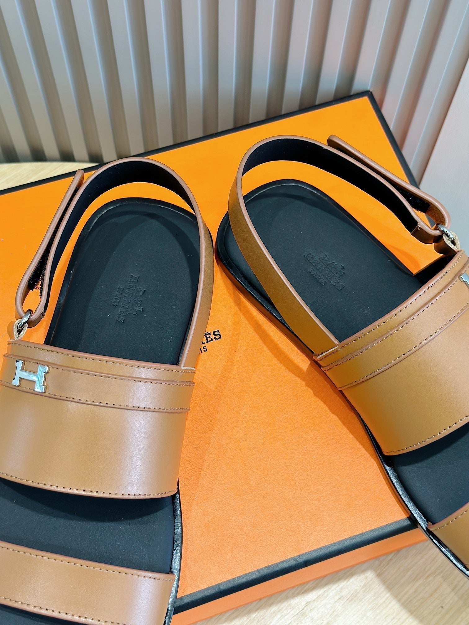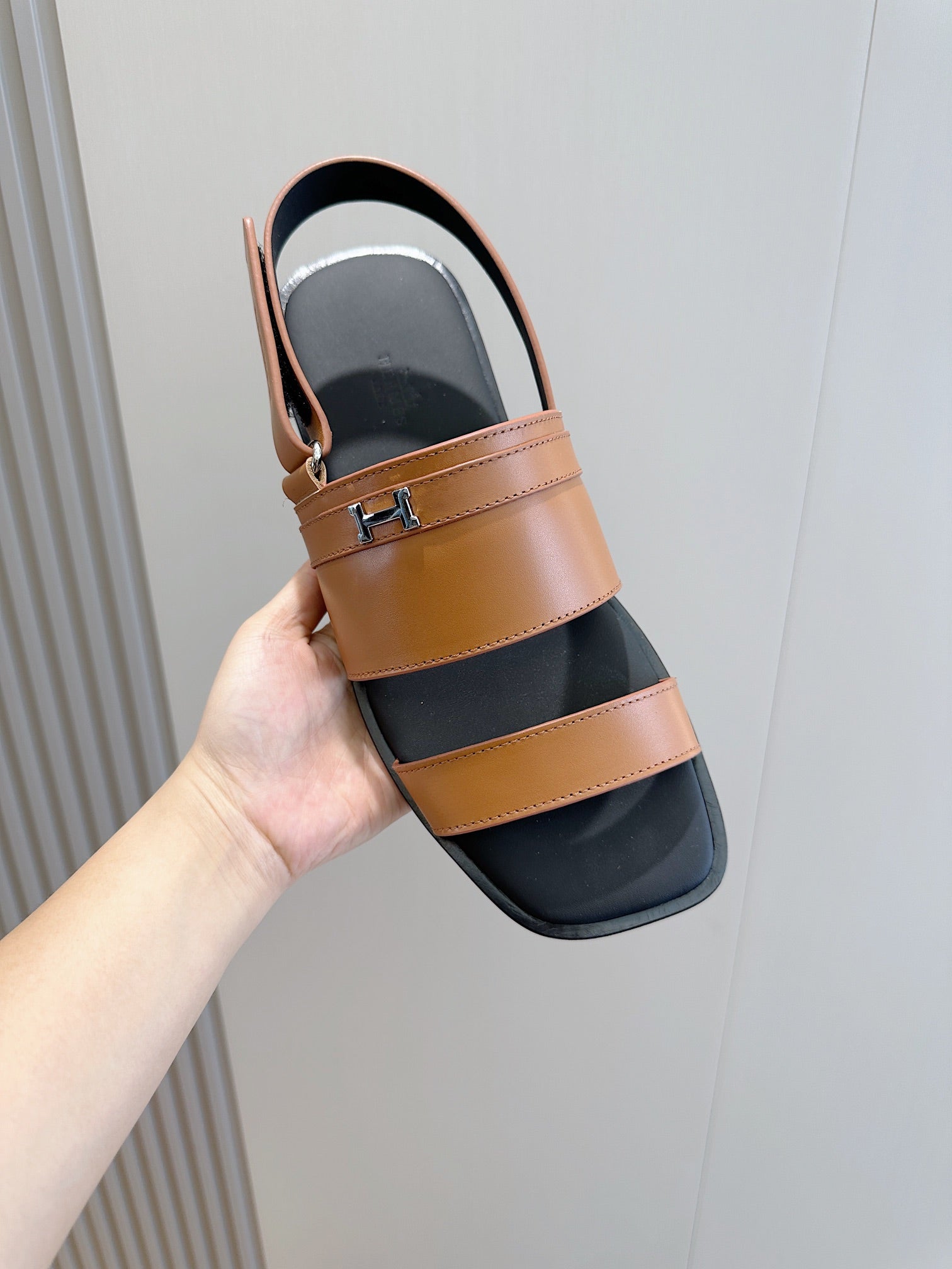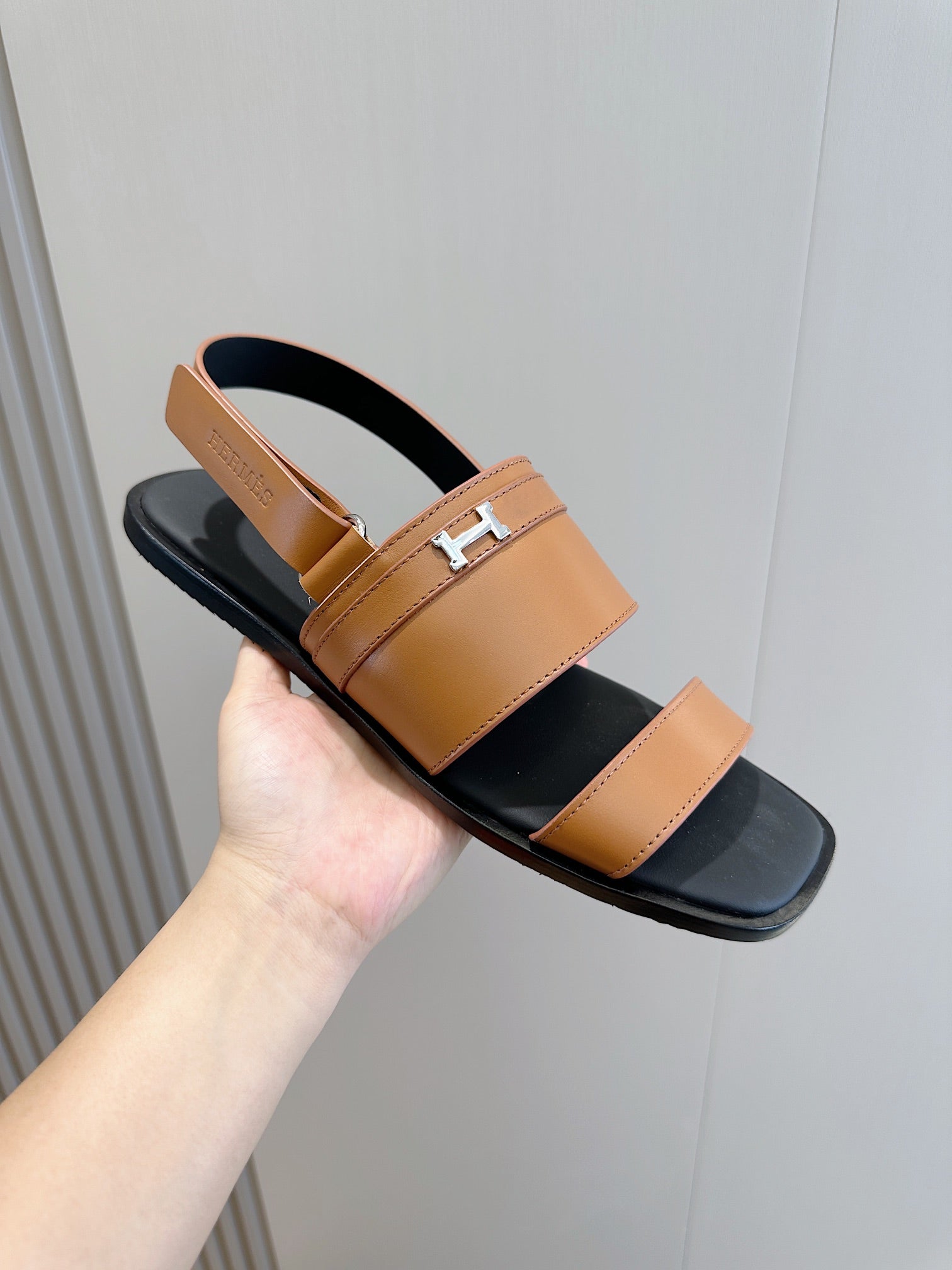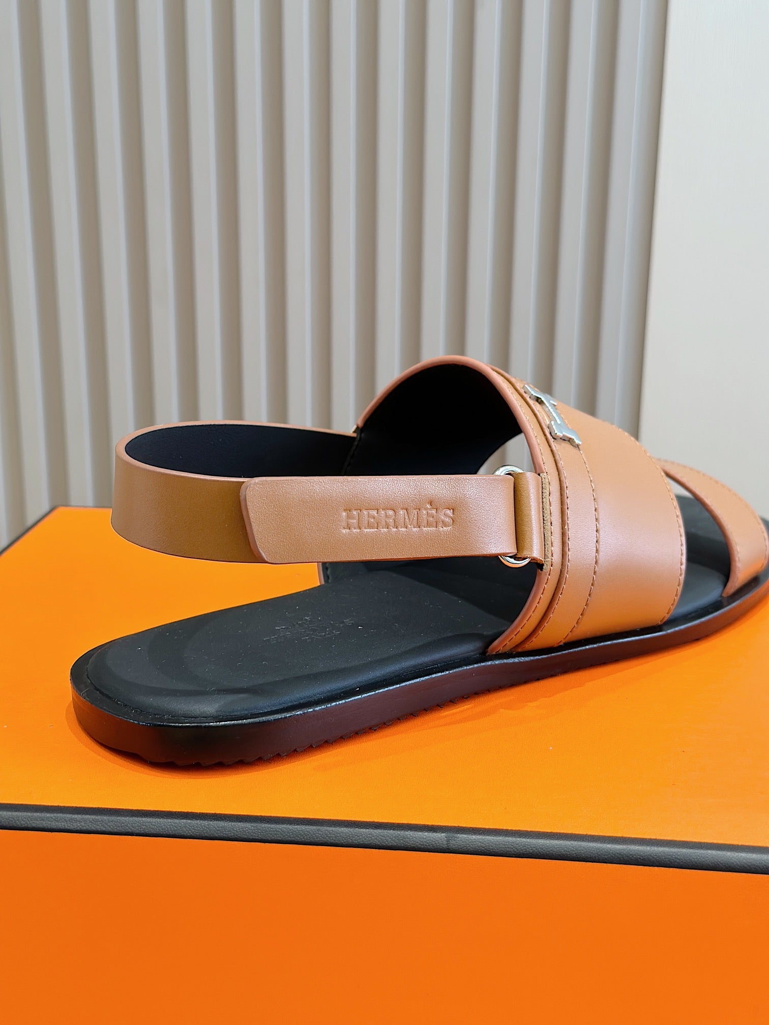 HM HENRIO FLAT SANDAL CARAMEL CALFSKIN