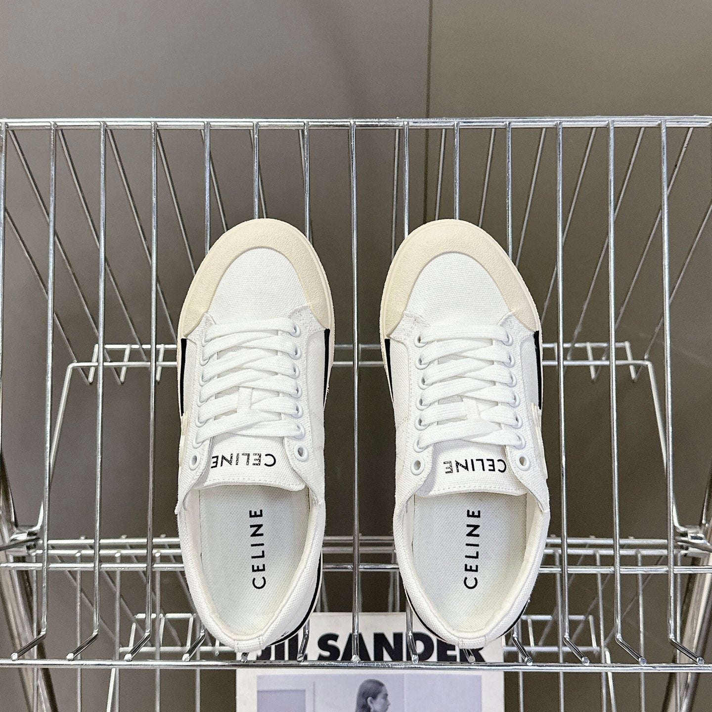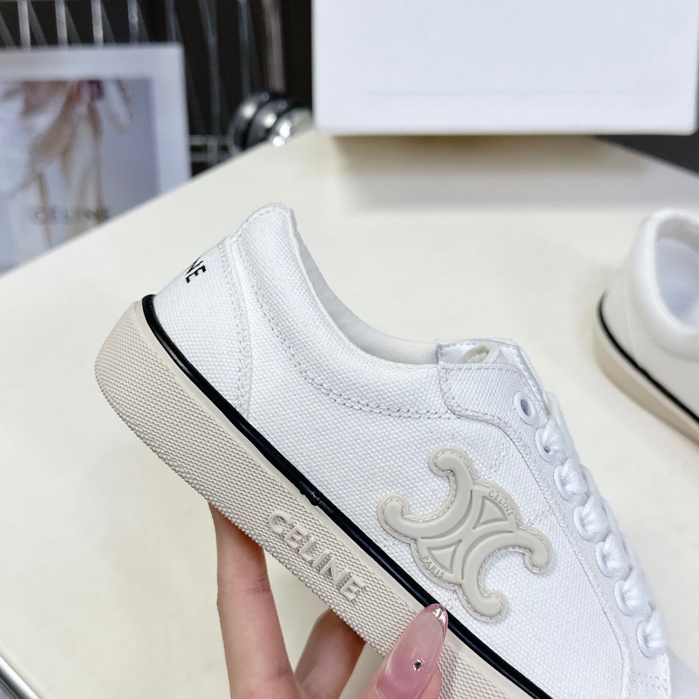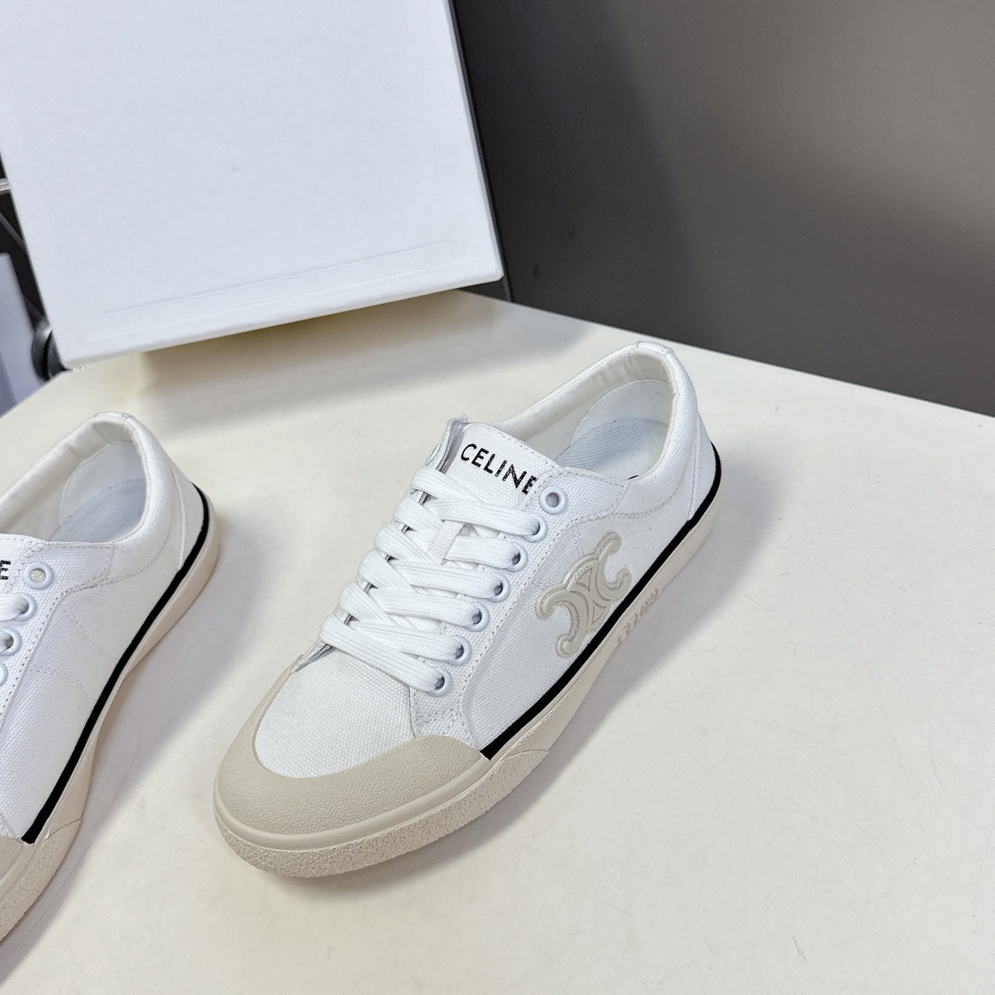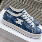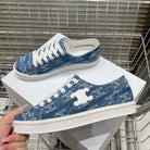 JANE SNEAKERS LOW LACE-UP WITH TRIOMPHE PATCH IN CANVAS AND CALFSKIN DETAIL DENIM/ WHITE LOGO