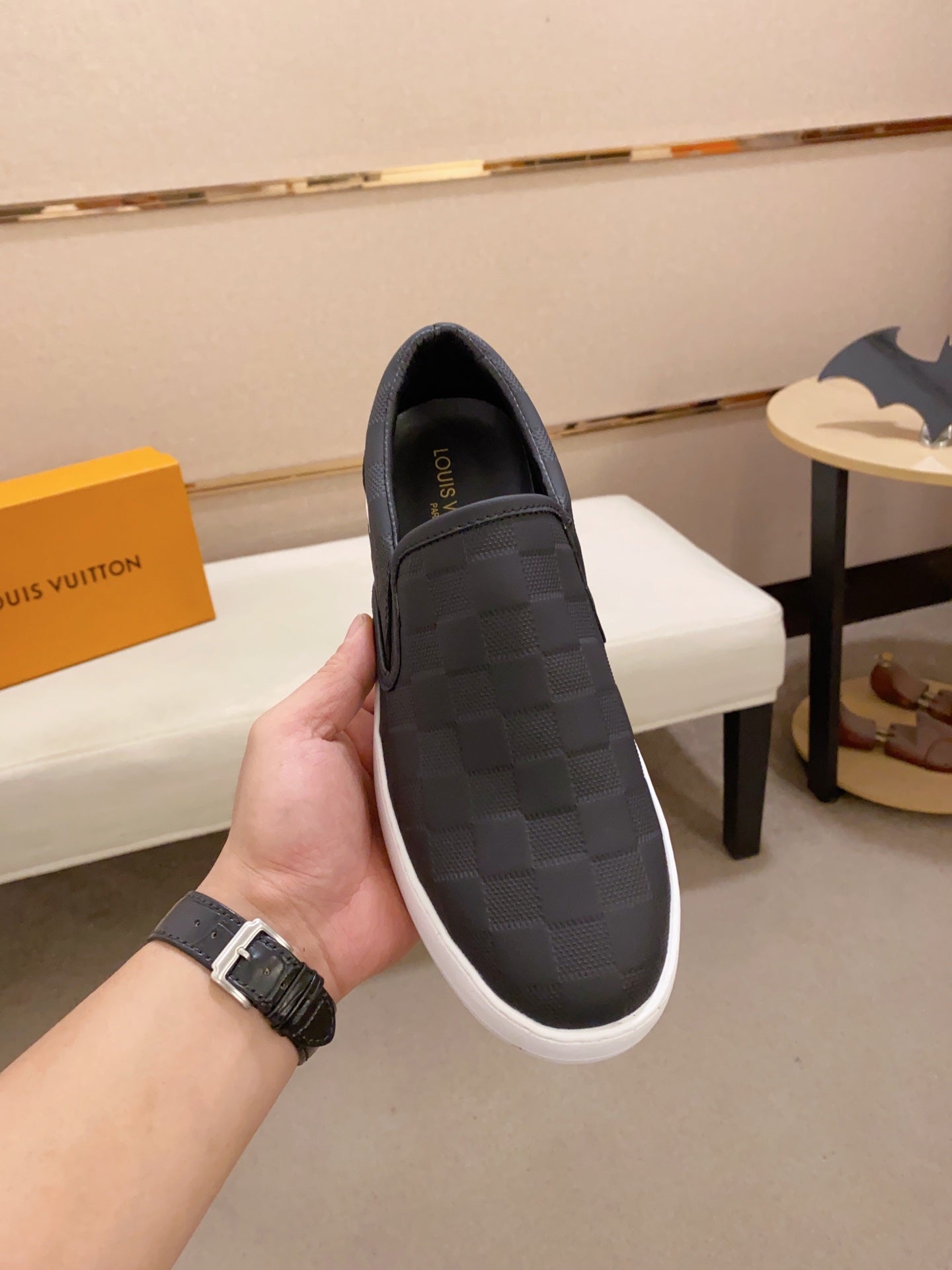 LV LOAFER IN BLACK DAMIER SHEEPSKIN