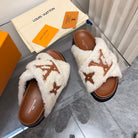 LV Paseo Flat Comfort Mule White Brown Fleece