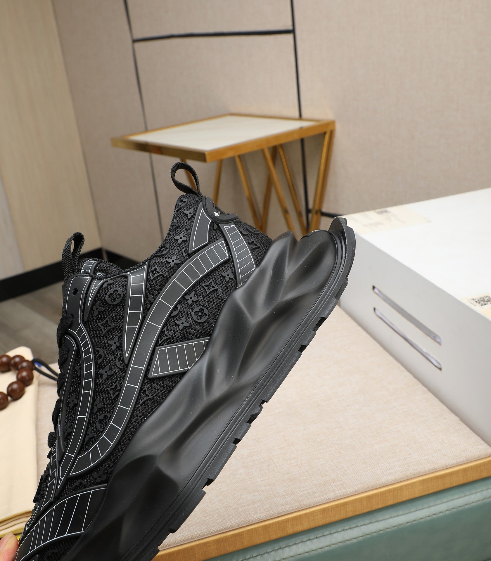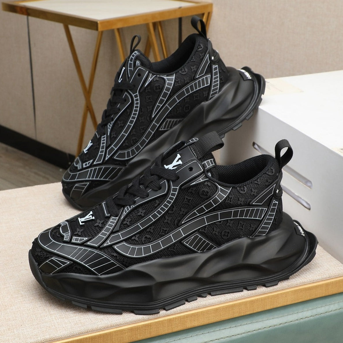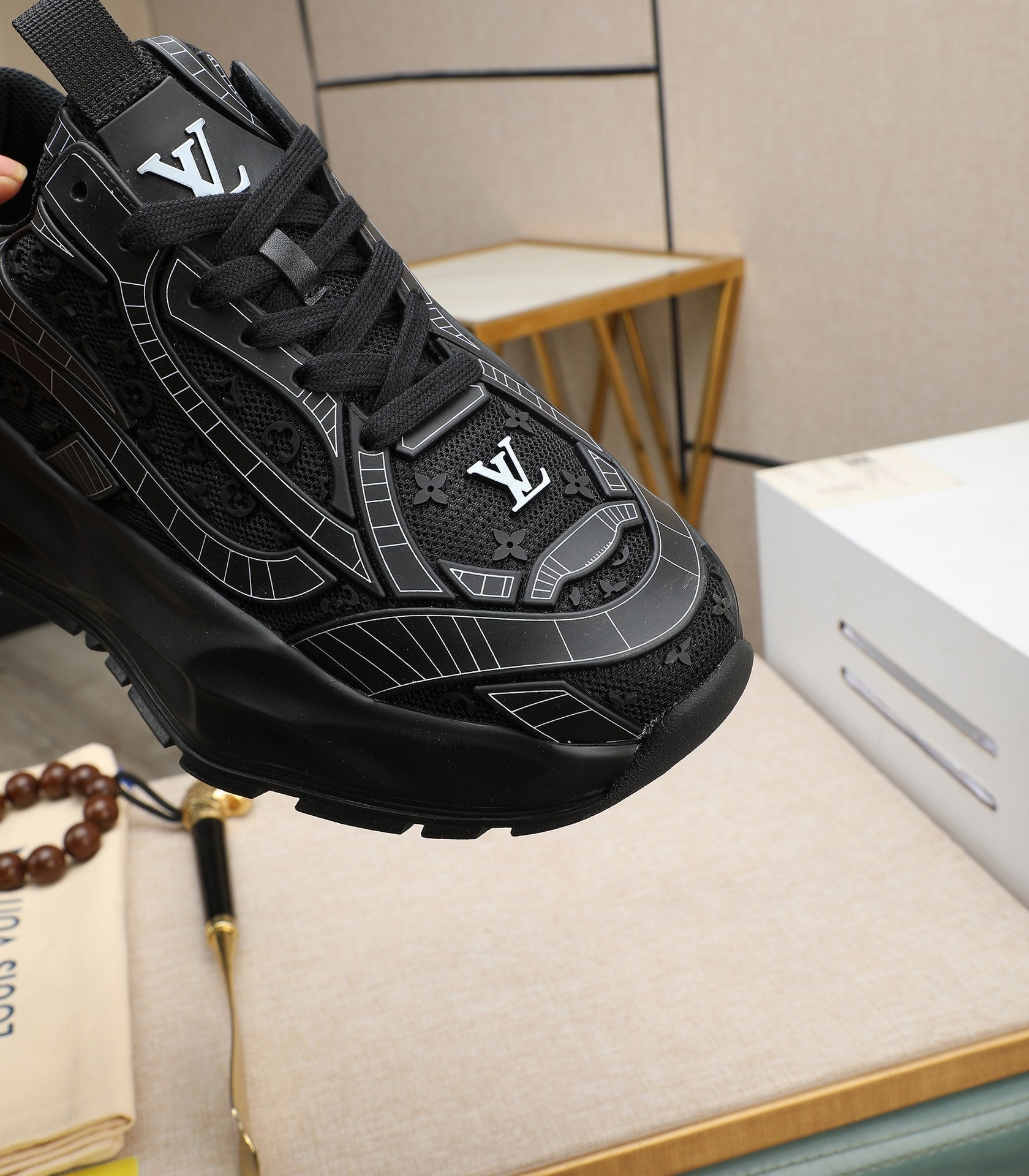LV TRAINER IN BLACK CALFSKIN AND BREATHABLE MESH