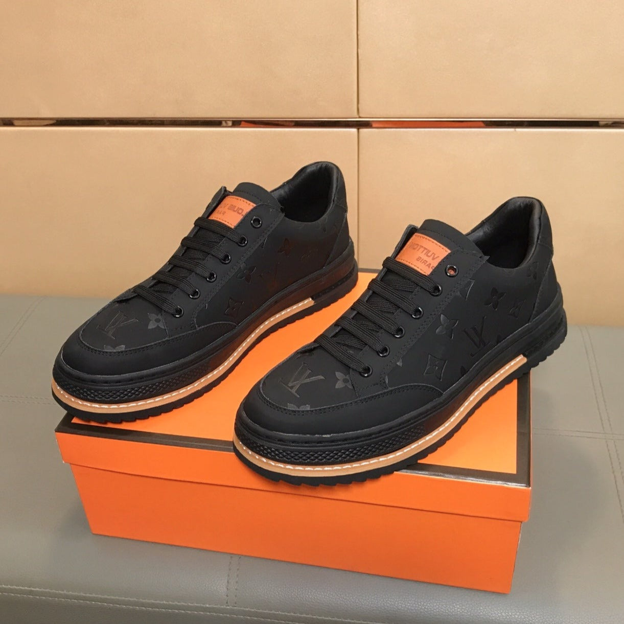 LV TRAINER IN EMBOSSED BLACK SUEDE