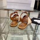 LYMPIAR FLAT STRAP SANDAL IN RAFFIA CALFSKIN WHITE CARAMEL BROWN