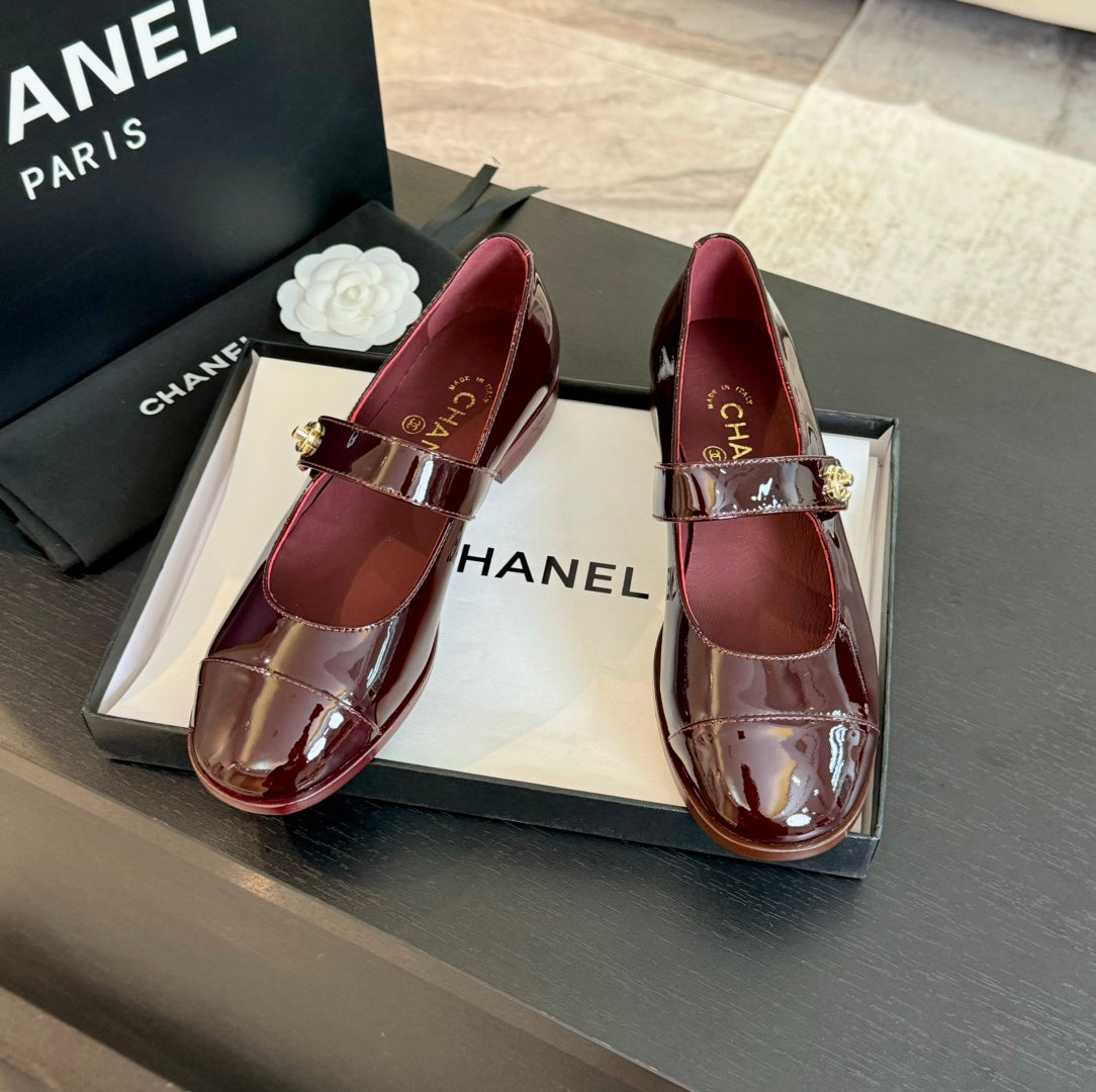 mary jane flat Red Wine patent calfskin