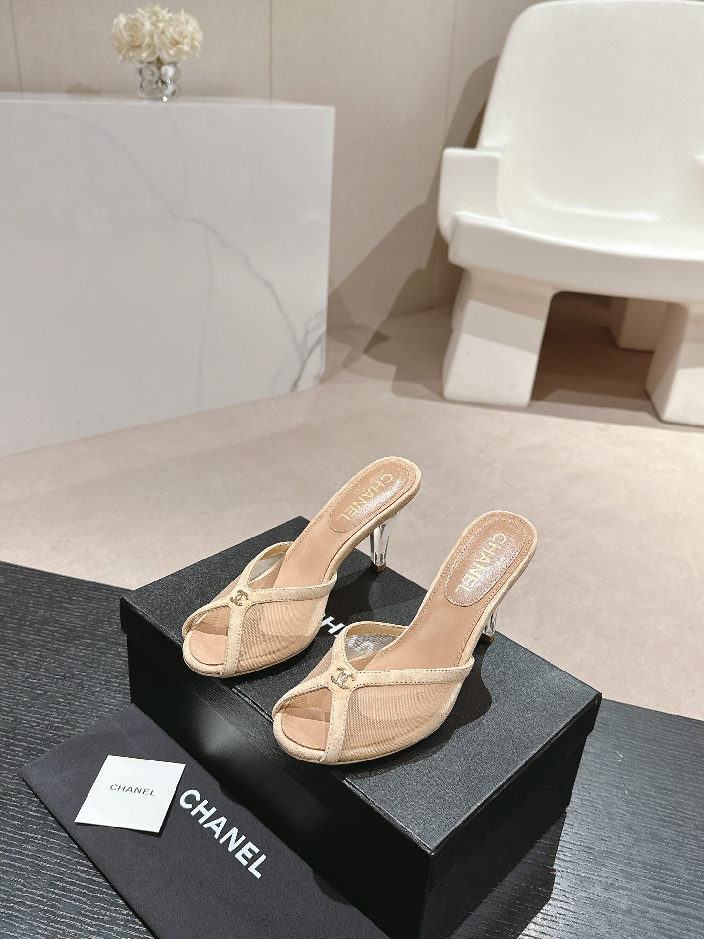 mule sandal 75 beige fabric dark beige calfskin