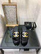 mule sandal 95 black quilted waxed leather