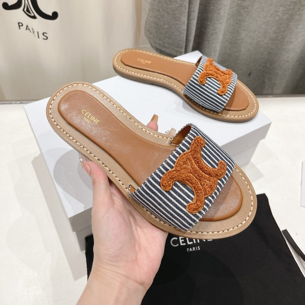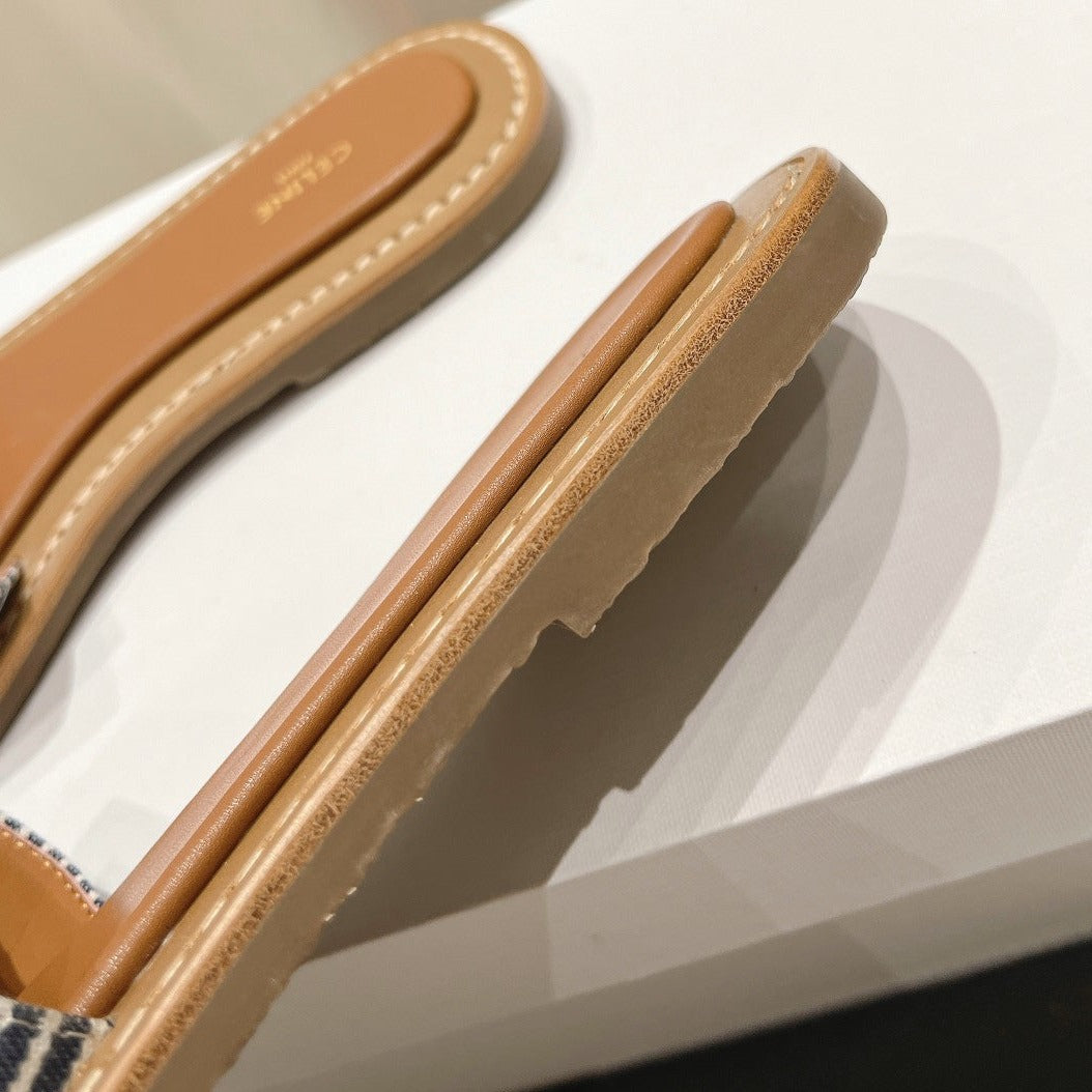 LYMPIA MULE IN TRIOMPHE JACQUARD WOOLLEN FABRIC BROWN BLACK CARO