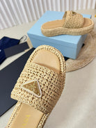 PRA WEDGE FLATFORM SLIDES BEIGE RAFFIA