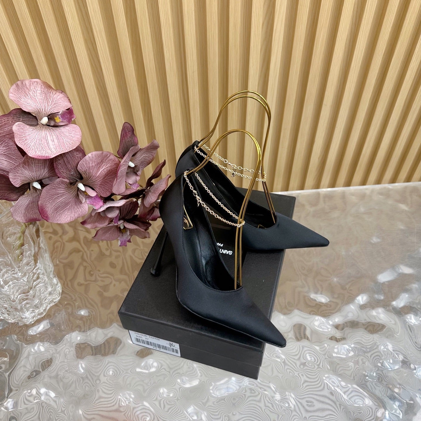 RÉGINE PUMPS IN BLACK SATIN GOLD CHAIN