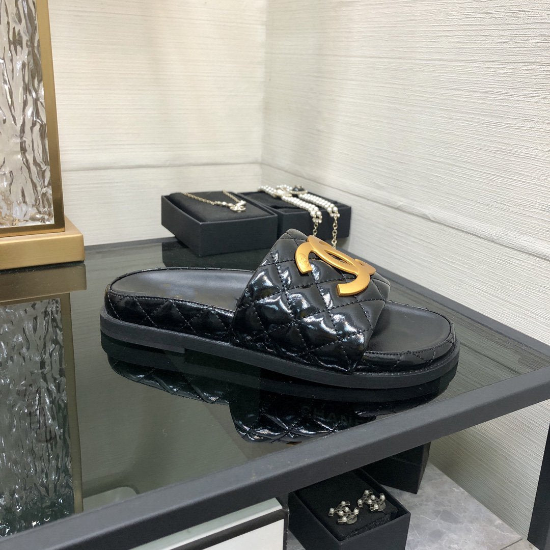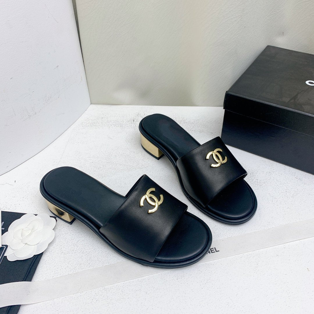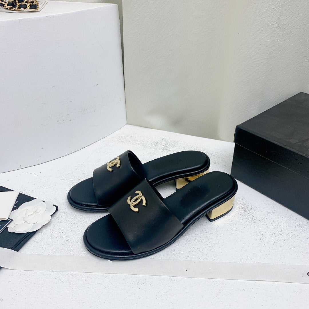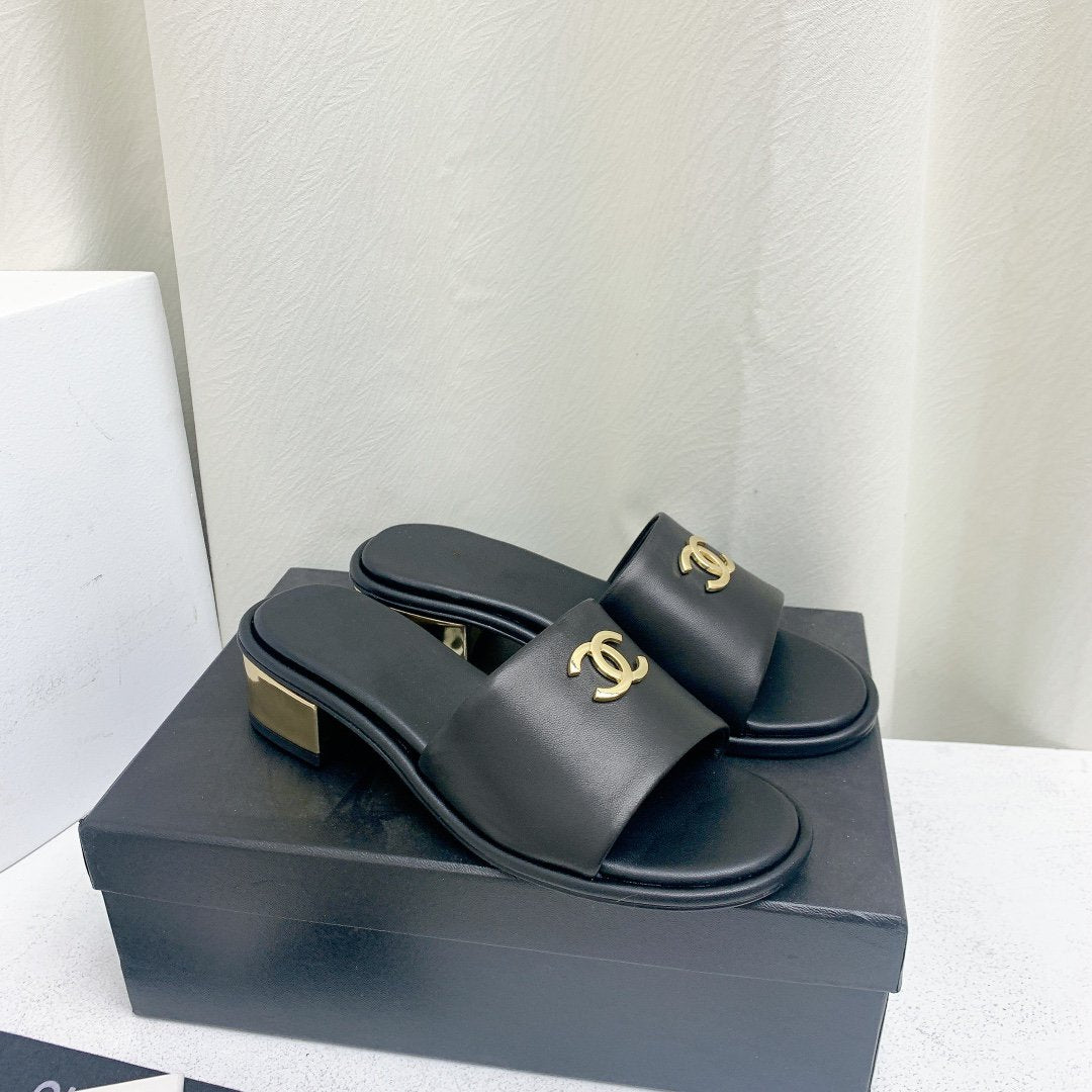 mule sandal 50 black gold lambskin