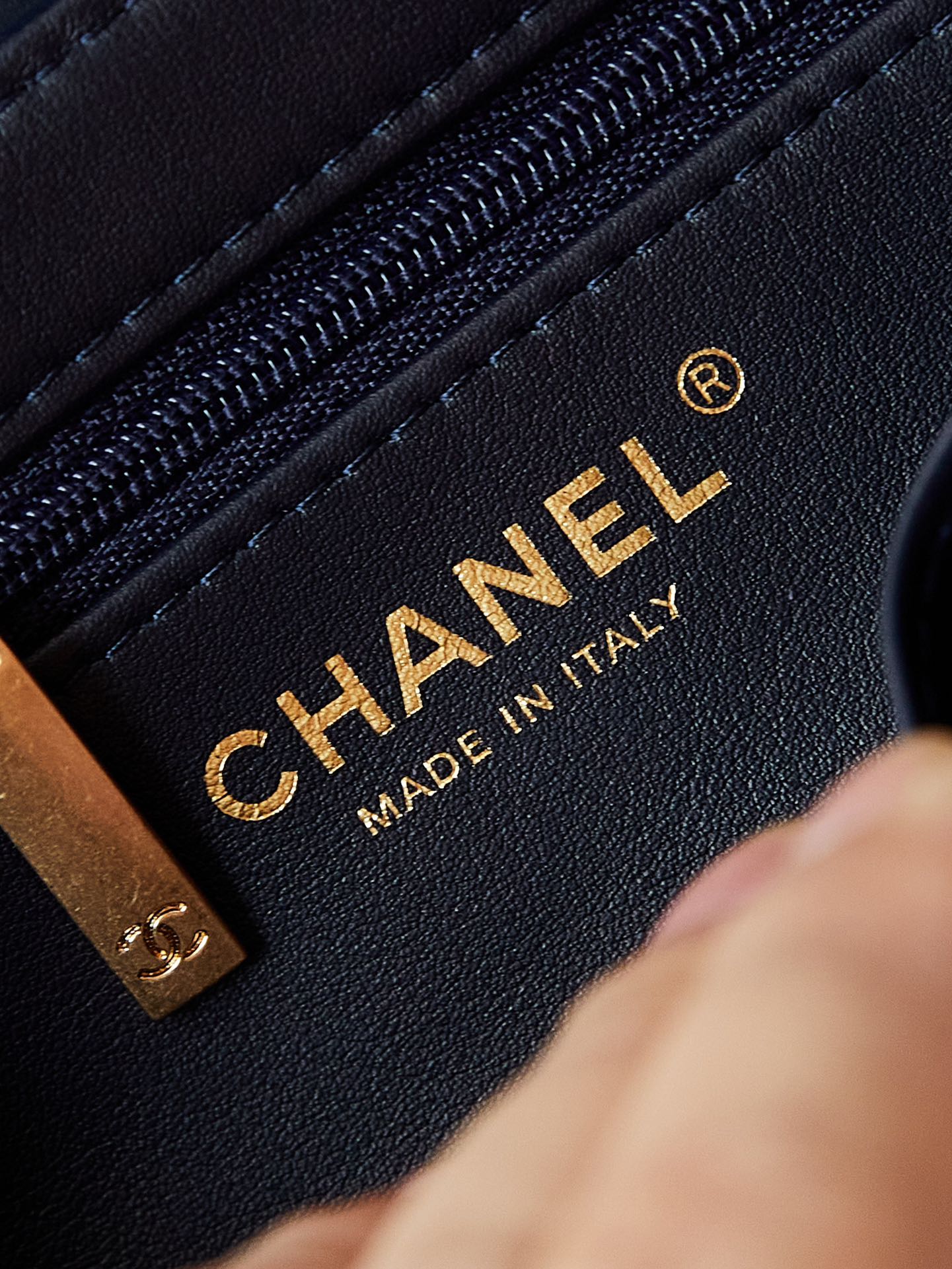 cc 24a nano 19cm kelly shopper bag navy blue lambskin