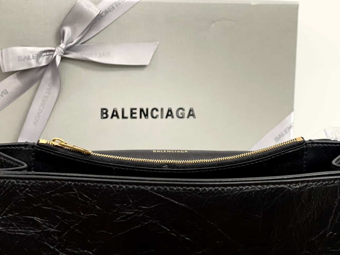 CRUSH MEDIUM CHAIN BAG 31 IN BLACK CRUSHED CALFSKIN GOLD HARDWARE