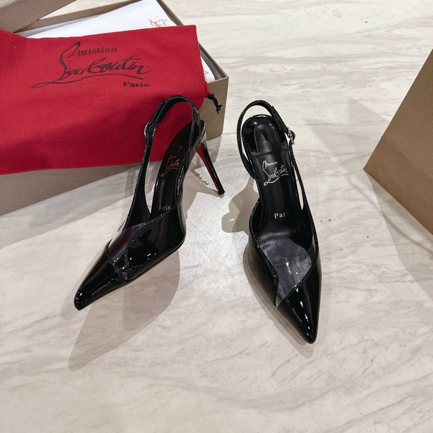 CL 25 Slingback Sandals Black PVC Gloss Calfskin 307531