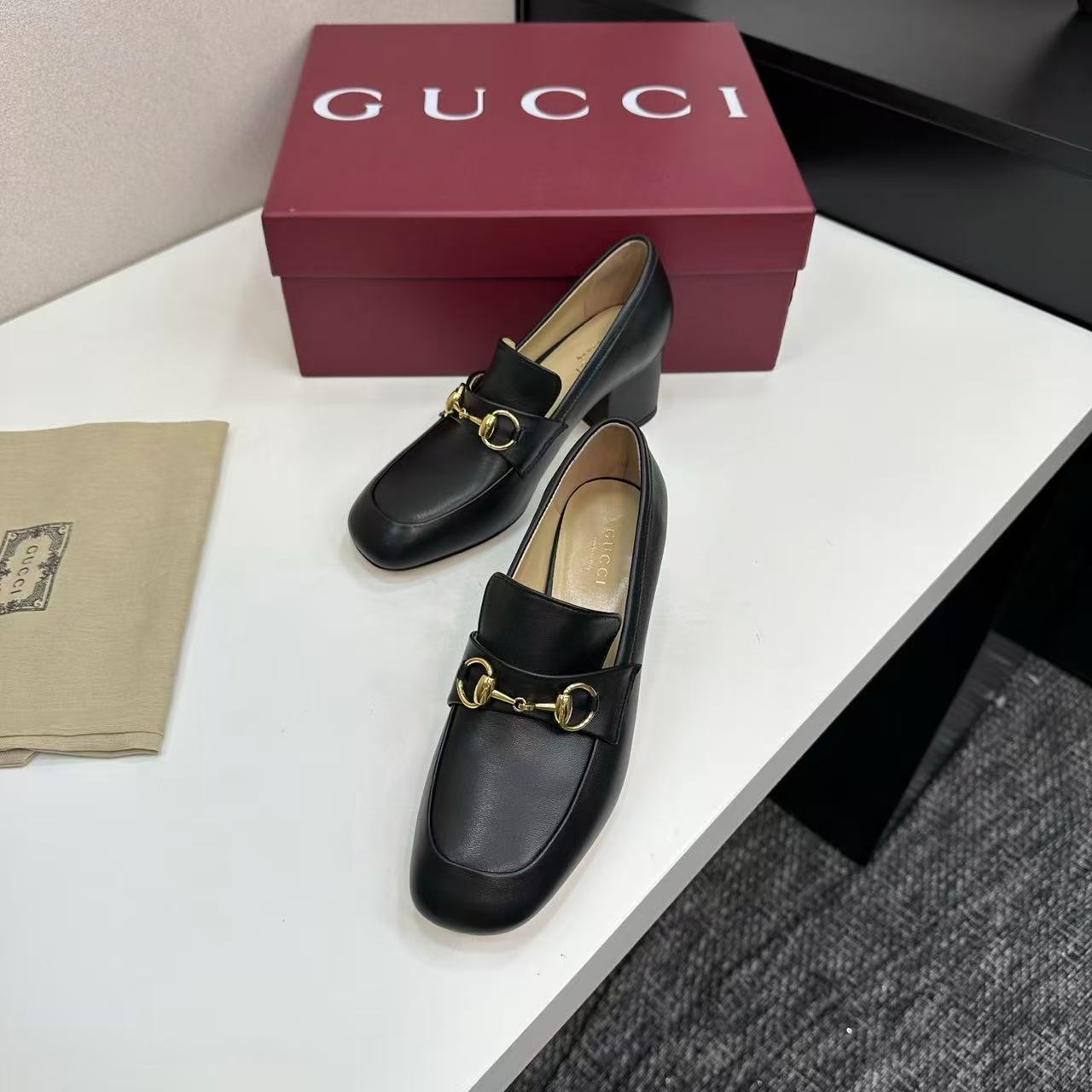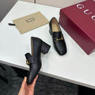 Gucci 2025 Lady Horsebit Loafer Pump Black Gold Leather