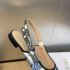 JAdior Slingback Flat Pastel Midnight Blue Multicolor Embroidered Cotton with Toile de Jouy Mexico Motif