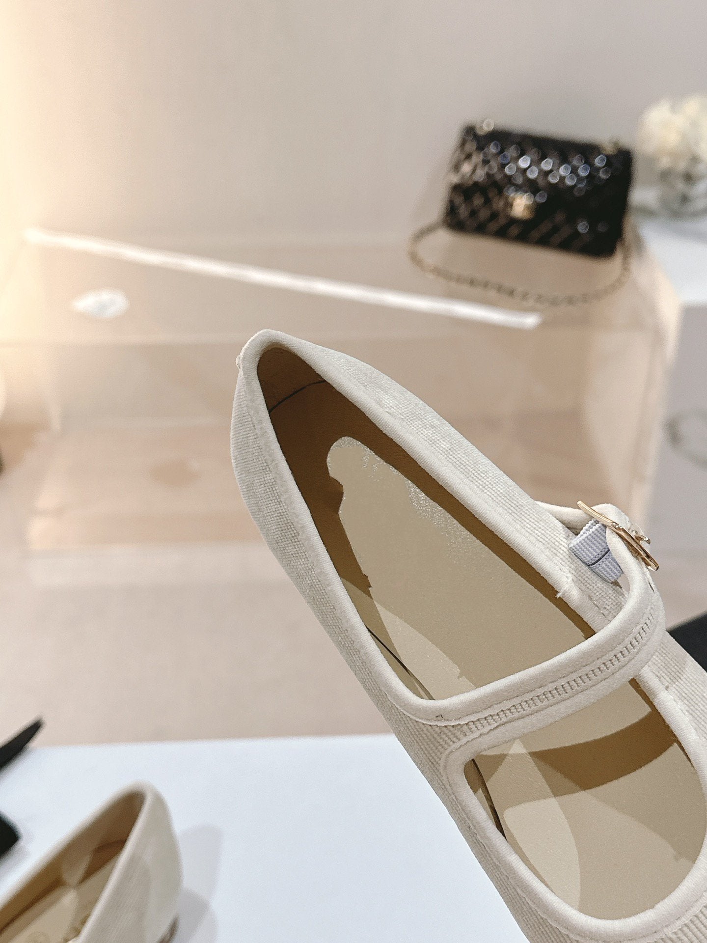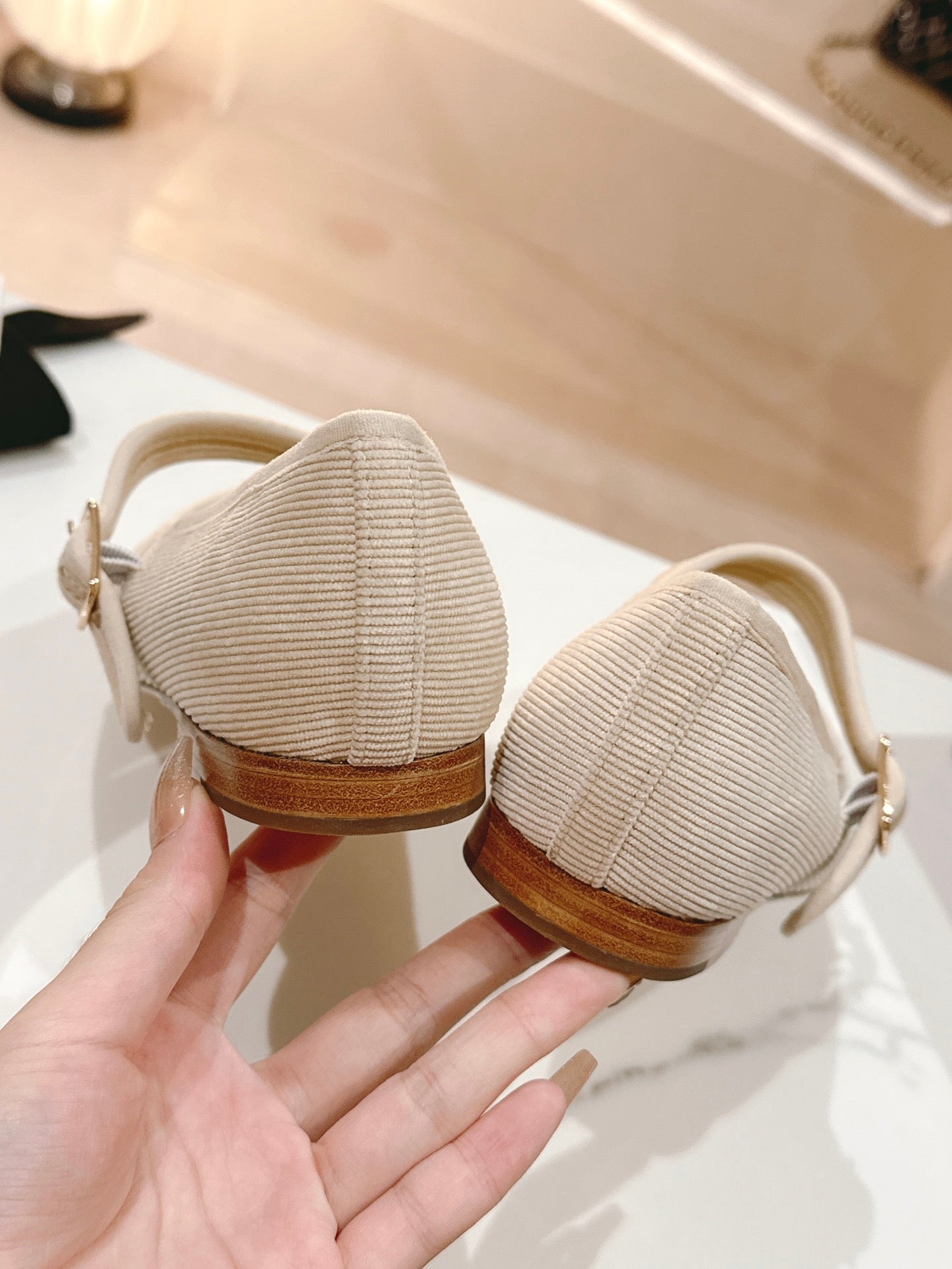 mary jane flat light pink corduroy