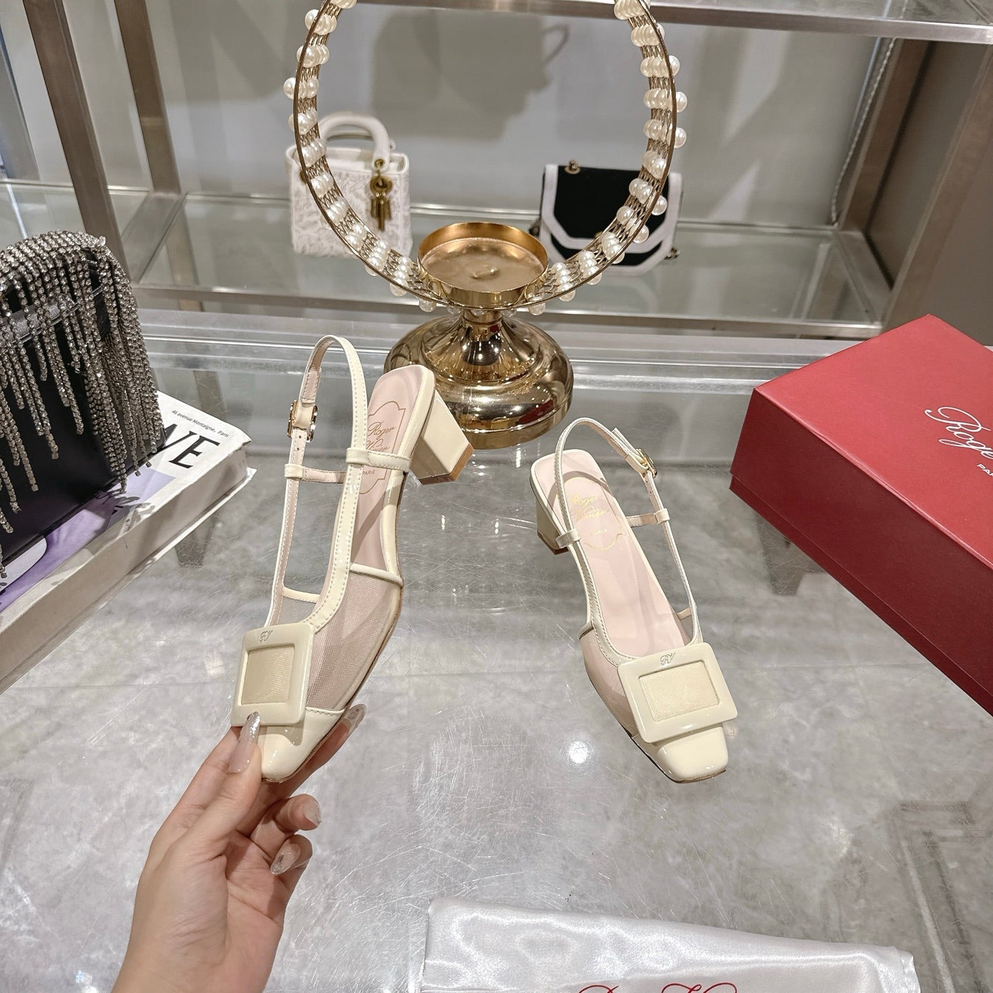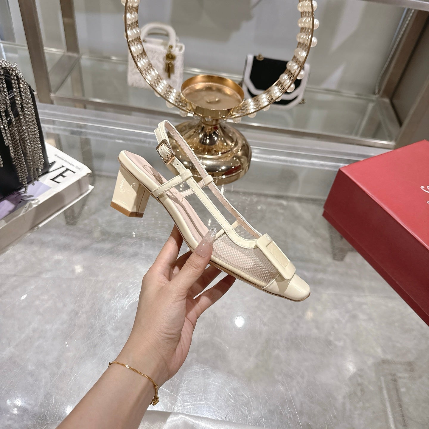 Viv 25 Slingback Milky Yellow Mesh Italian Leather 300779