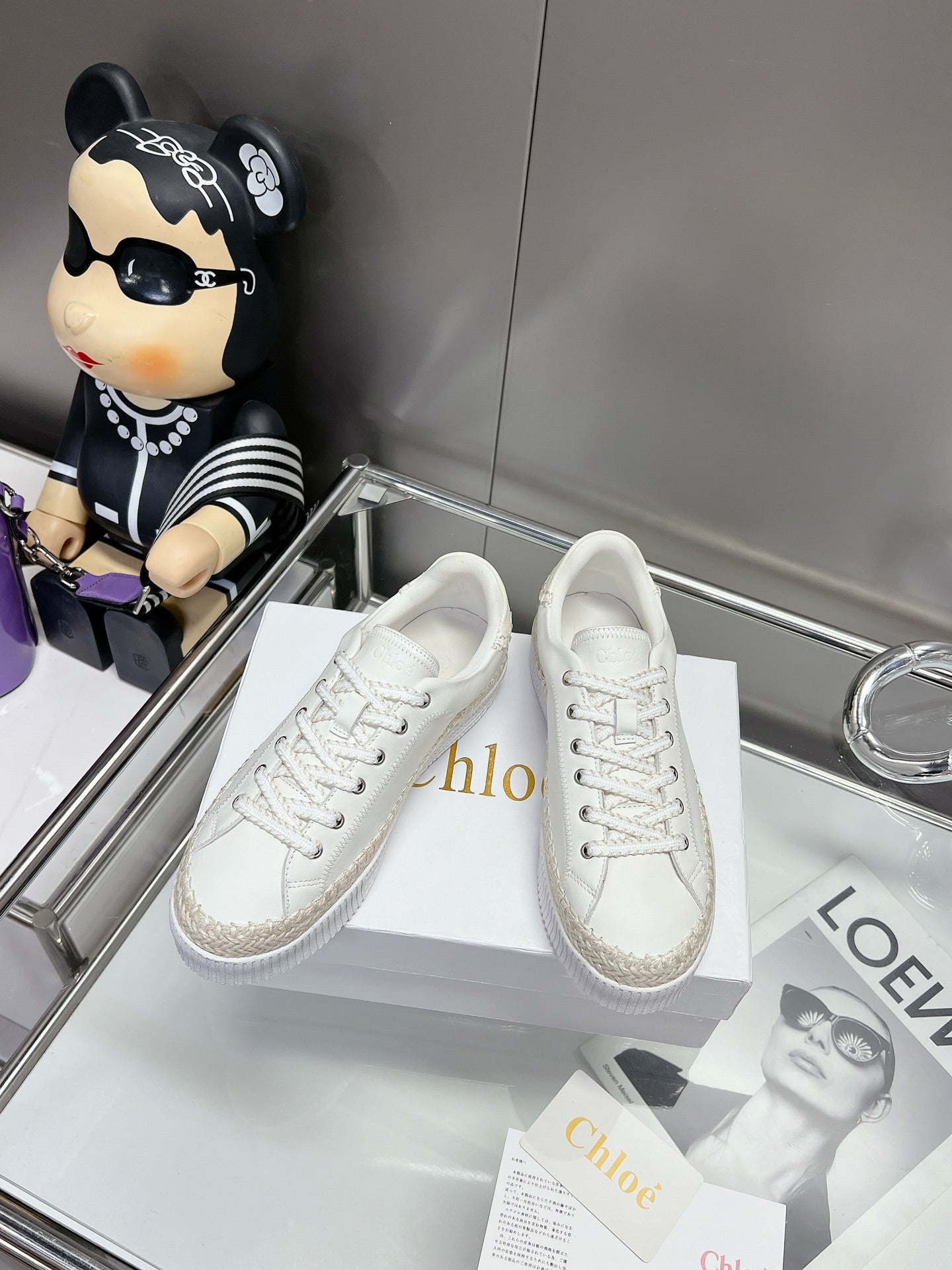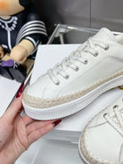CHLOÉ TELMA LACE-UP SNEAKER IN WHITE LAMBSKIN AND RAFFIA