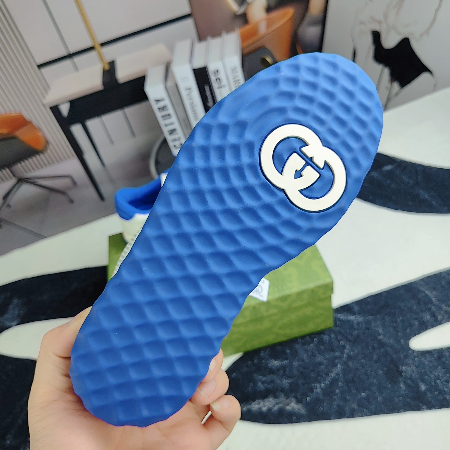 GG Men's MAC80 Sneaker White Blue Cowhide 523622