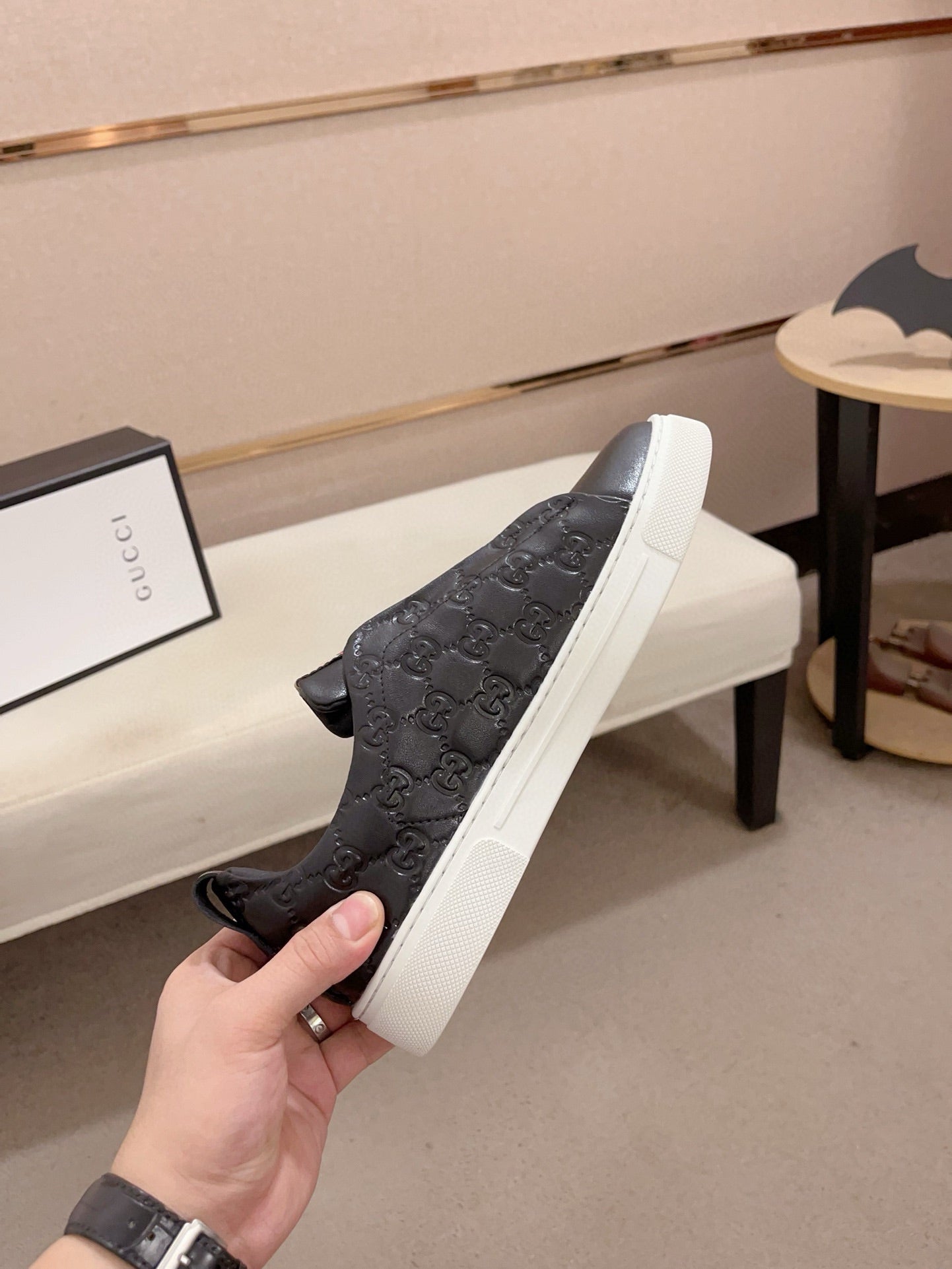 GG Men's Sneaker Black Sheepskin 448471