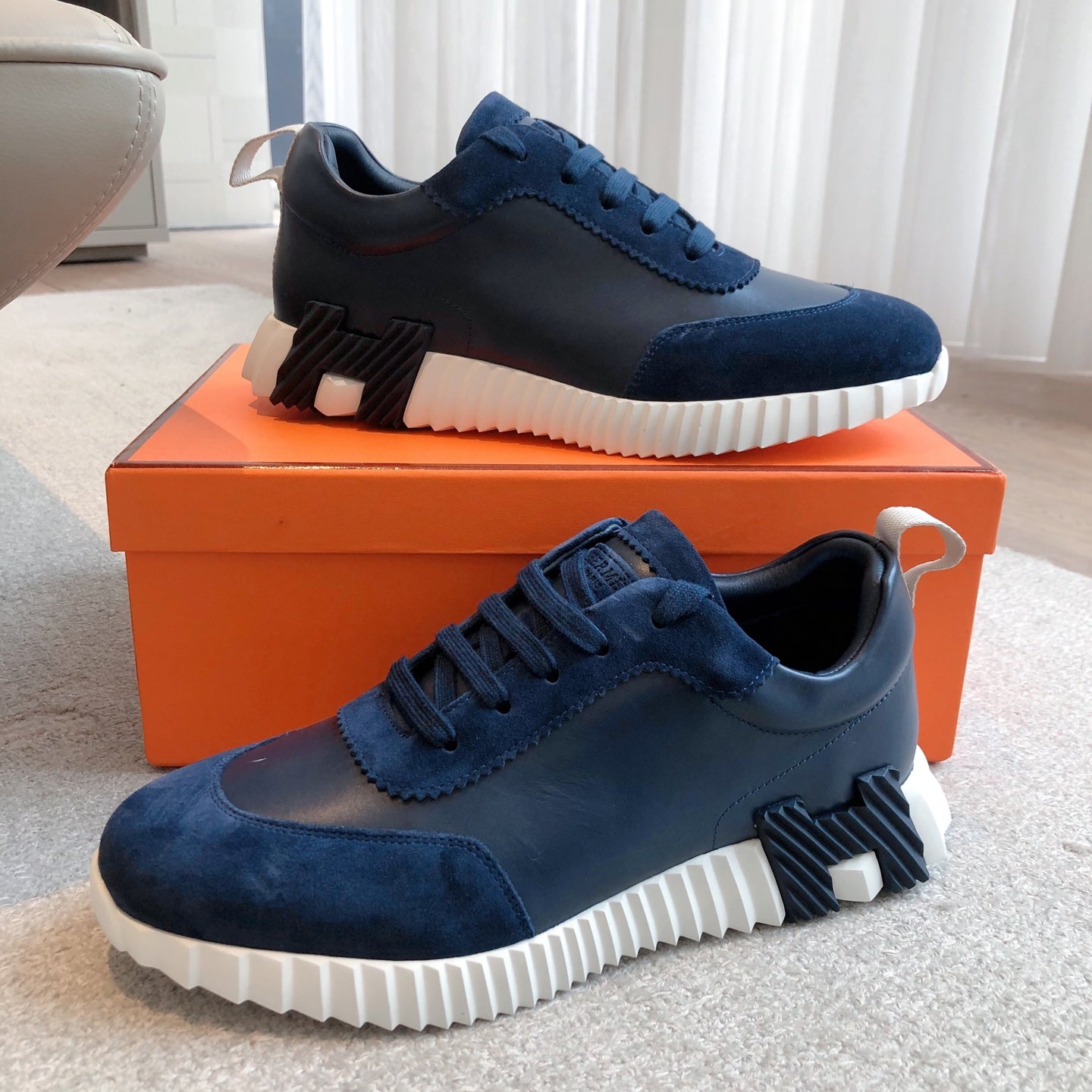HM Men's 25 Sneaker Navy Blue Cowhide Suede 541322