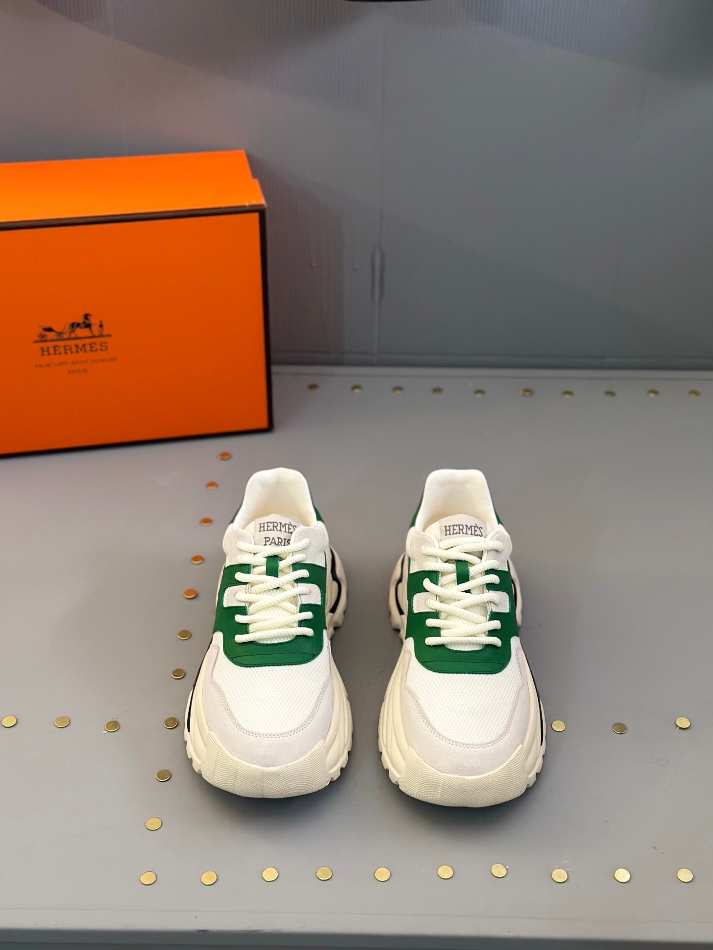 HM Men's Sneaker White Green Mesh Calfskin 541263