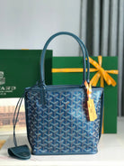 ANJOU MINI BAG 20 IN NAVY BLUE CALFSKIN AND GOYARDINE CANVAS